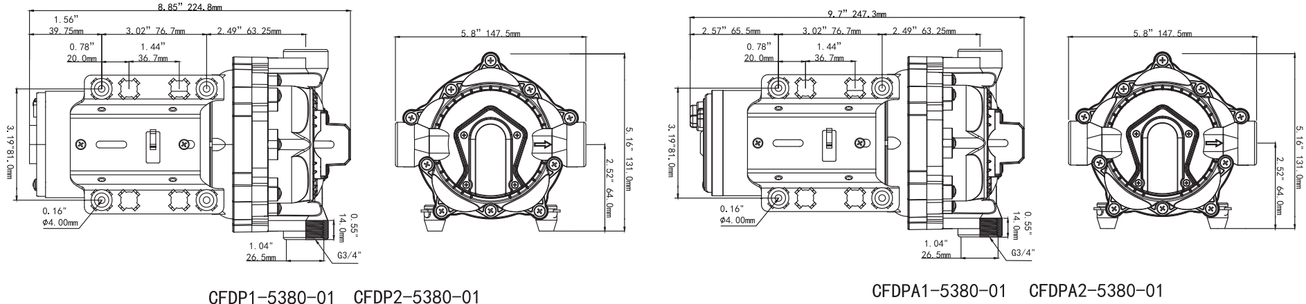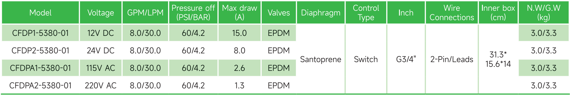 Bơm màng dịch chuyển tích cực 4 buồng, tự mồi, có khả năng chạy khô |